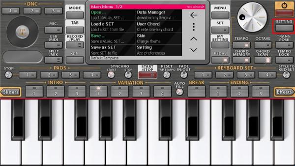 1、在本站下载安装,进入首页界面,用户可以发现ORG 24电子琴还是全英文的,点击界面的设置