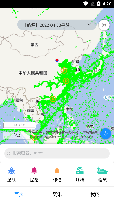 1、在长江北斗app首页点击搜索栏,输入船名或mmsi即可查找船只