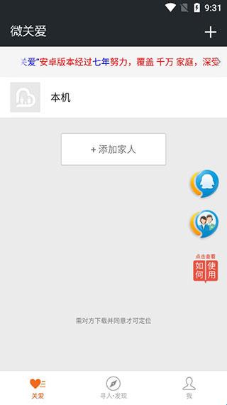 1、先从本站下载好微关爱app,下载完成后,打开app,在首页找到添加家人。