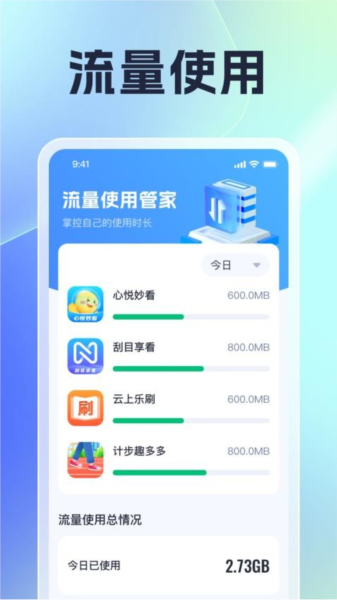2、应用流量使用将手机应用流量的使用情况进行了直观的统计展示方便用户查看。