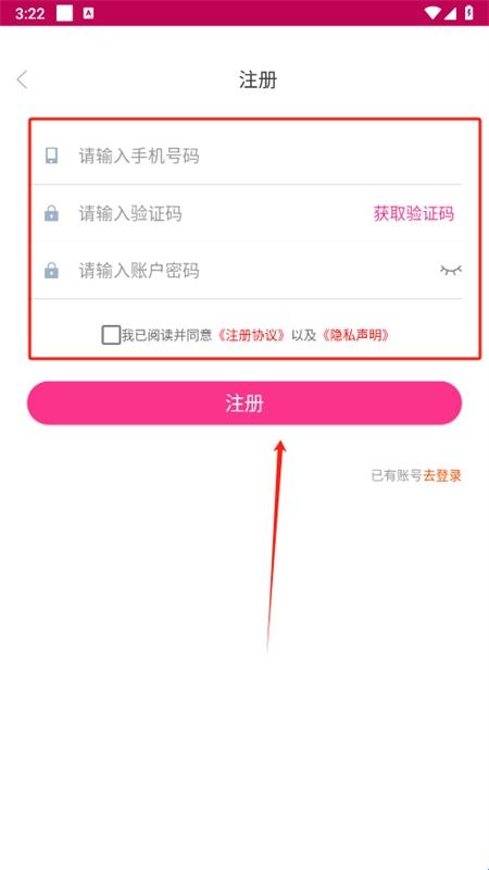 3、输入手机号和验证码,设置好密码后同意相关协议,点击注册即可。