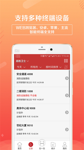 2、移动点巡检:可在任何地点、任何时间进行巡检;