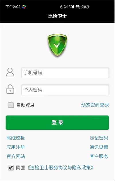 1、巡检卫士客户端(App)安装成功后,打开进入登陆页面