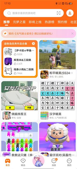 2、首页会为您推送热门、好玩的游戏,想要了解近期有哪些游戏即将上线,可以点击【即将上线】分区,会具体地为您显示,即将上线或近期上线的最新游戏,方便大家及时获取最新游戏动态,并及时预约游戏。