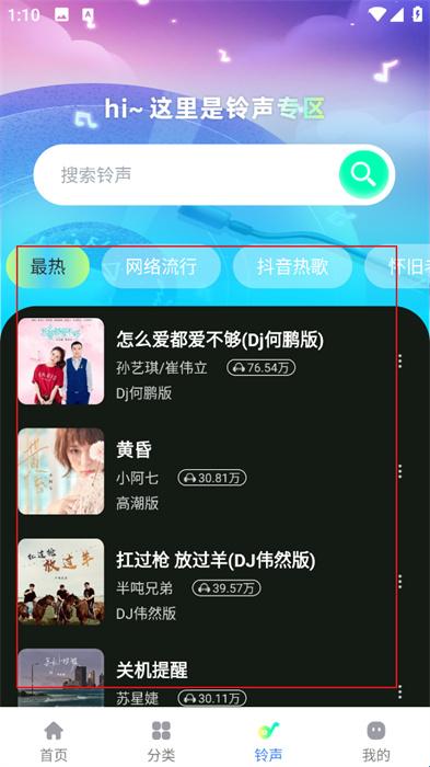 3、随后,切换到【铃声】页面,这里能看到近期比较热门的一些铃声,都可以挑选;
