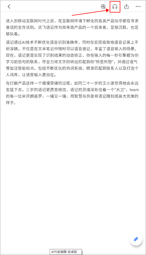 2、进入文本界面后,点击上方的“耳机”图标,就能听小说啦。