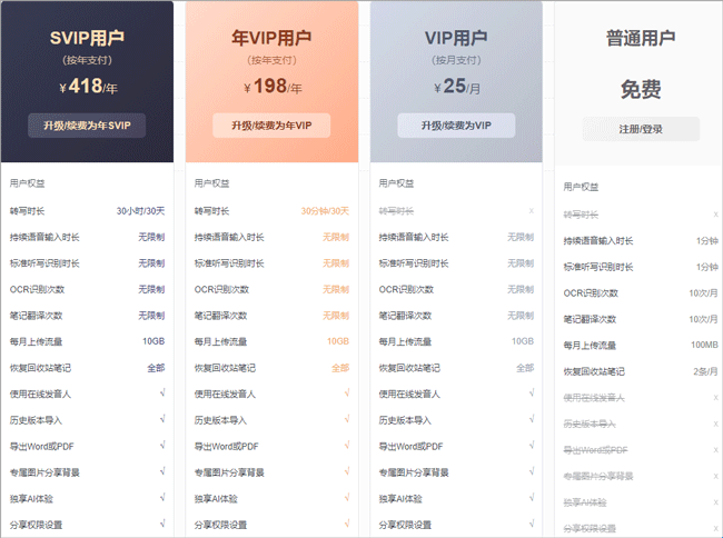 讯飞语记收费和免费的区别