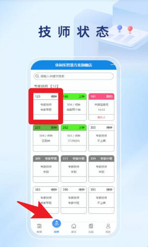 5、技师状态:展示了关于技师的实时状态,可以在线对技师的接单数据进行查看。
