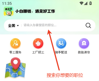 3、如果您有特定的工作类型或公司名称想要查找,可以使用顶部的搜索栏输入关键词进行快速查找。无论是“骑手”、“客服”还是“设计”,都能帮助您迅速定位到心仪的职位。