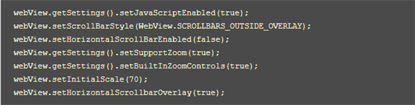 要注意的是,其中的webView的一系列用法,比如 webView.getSettings()。setJavascriptEnabled(true);设置可以使用javscript;