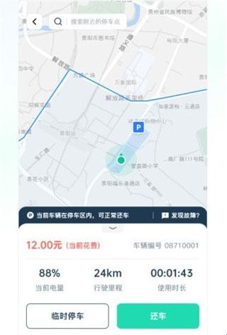 3、到达P点之后就可以正常还车啦,注意哦,如果在非P点是停车锁车是需要收取手续费哦,请小伙伴注意。