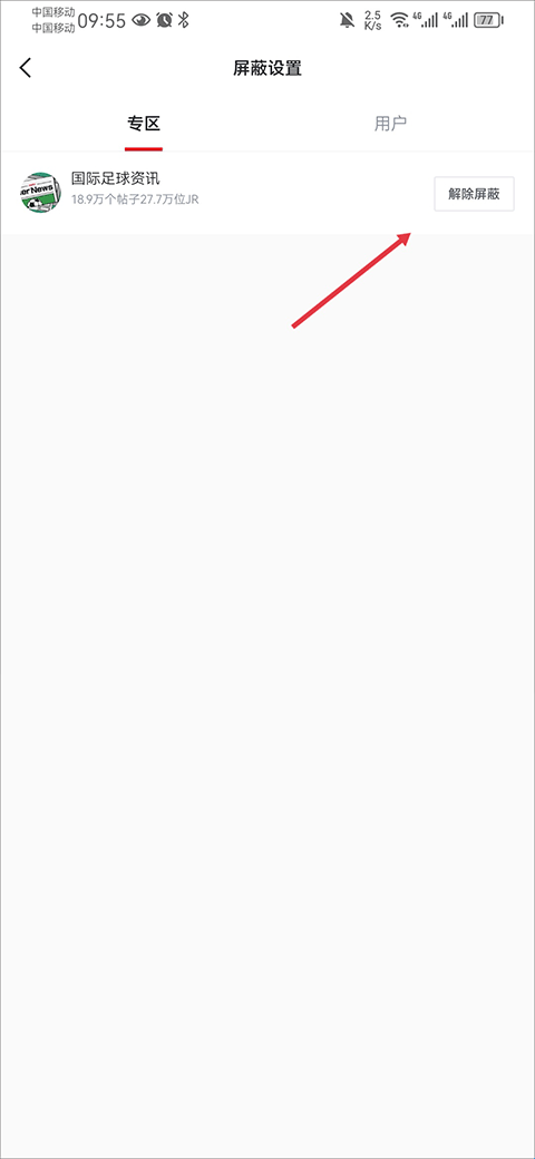 5、最后在屏蔽设置中的专区下将屏蔽的专区解除即可。