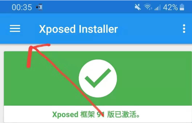 6:点击打开框架里第三个APP "Xposed Installer";打开后点击首页左上角的菜单按钮