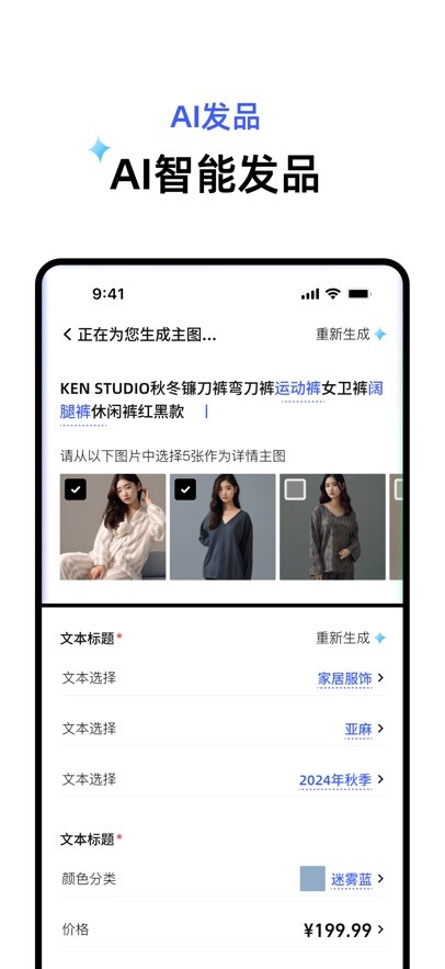 2、AI极速发品工具:60秒自动生成商品标题、主图及详情页,支持批量上传SKU与价格库存,发品效率较传统方式提升5倍。