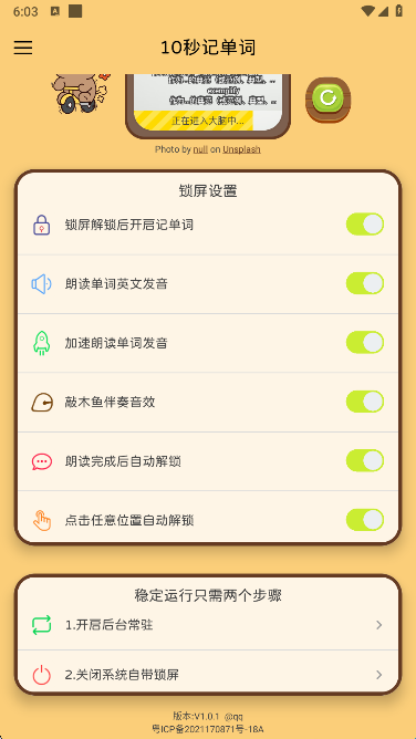 10秒记单词app是一款专为利用碎片时间高效掌握英语词汇设计的创新型学习工具,通过“被动学习”模式将记忆融入日常行为,用户每次解锁手机时,系统自动触发10秒记忆程序,以动态悬浮窗形式展示高频词汇与场景化图像,配合双语音频强化多感官记忆。其核心目标是通过“空间随机刺激+艾宾浩斯遗忘曲线”双引擎,让用户在无意识操作中自然形成长期记忆,日均解锁50次即可无痛积累1500+核心词汇,堪称通勤、备考、语言启蒙的“时间管理革命者”,单词以动态背景形式在屏幕随机位置闪现10次,打破位置依赖记忆,根据遗忘曲线动态调整推送频率,确保关键复习节点。