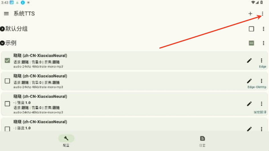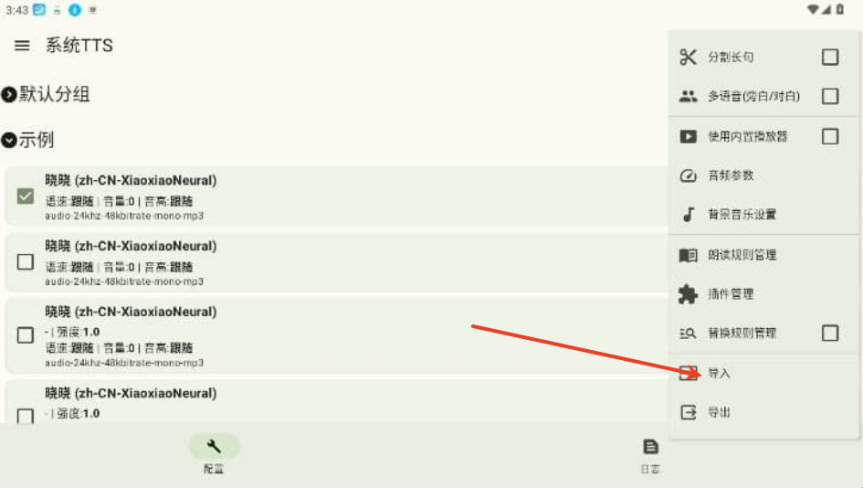 1、调节语速在主界面左上角按钮,系统TTS配置,进去就可以配置个性化语音了,