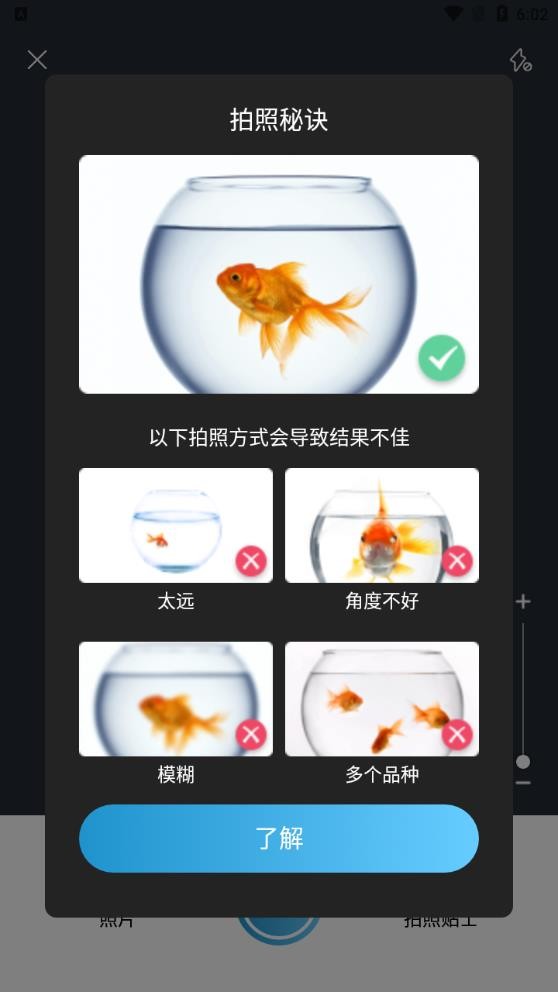 3、只需一次扫描,即可为您提供照顾鱼缸中鱼的知识