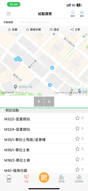 1、打开巴士报站app后,允许定位权限,系统会自动显示你附近的澳门巴士站点和线路。