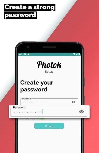 2、创建一个密码:创建一个安全密码。你的密码用来直接在你的手机上加密你的照片。