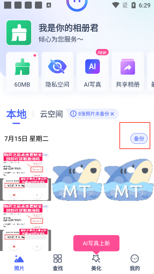 一键备份照片至云相册,释放手机空间,珍贵美照再也不怕丢!