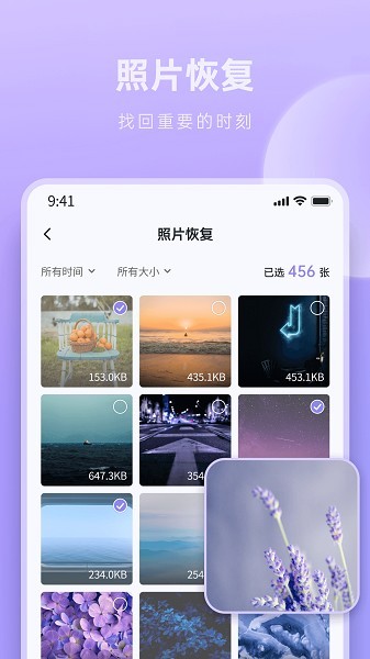 3、照片恢复:深度搜索丢失或误删除的照片,一键恢复找回丢失的记忆
