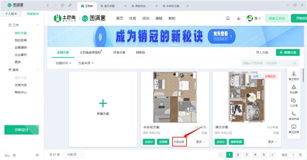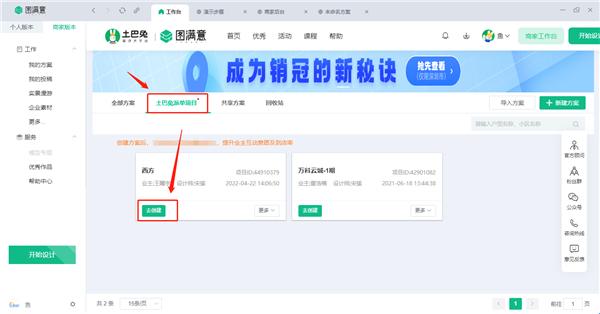 1、登陆公司子账号,点击我的方案界面,选择土巴兔派单项目选择对应项目ID去创建。