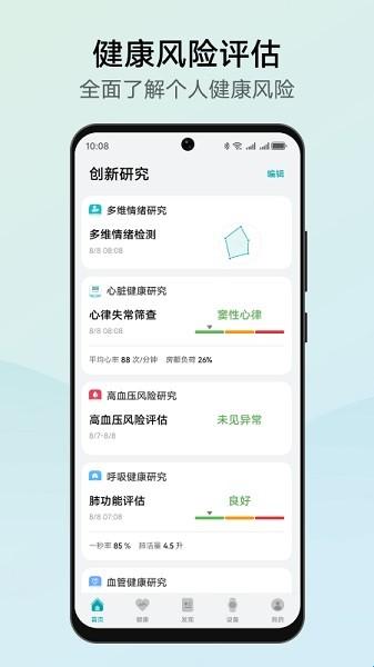 3、全方位健康管理:通过华为创新研究APP,您还可以加入更多的健康研究项目,如:心脏健康研究、血管健康研究、肝脏脂肪研究等,帮助您筛查并预防各类疾病风险,全面管理您的身体健康。