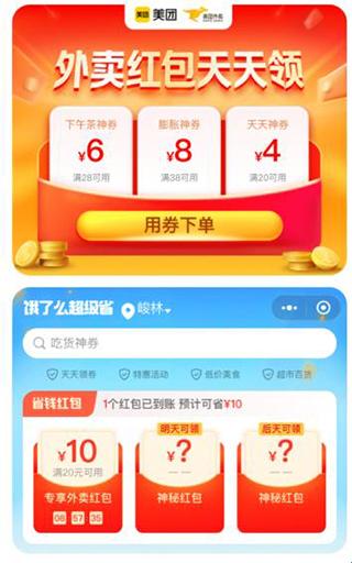 2、跳转至美团app/饿了么领红包并下单外卖;