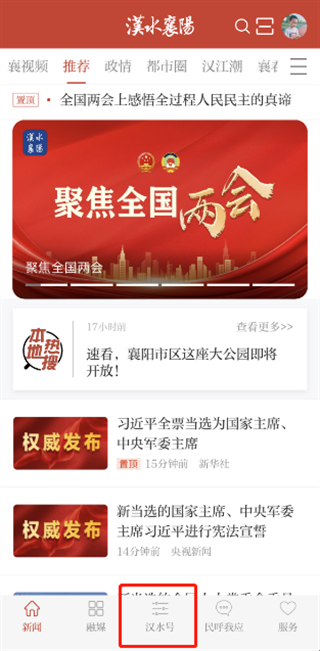1、打开汉水襄阳客户端,点击下方菜单“汉水号”