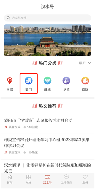 2、进入汉水号,点击“部门”,可以查看入驻部门列表