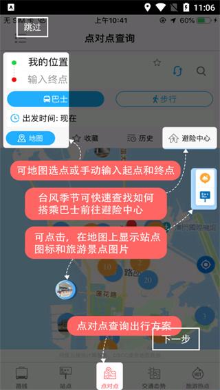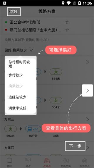 1、路线查询:用户可以快速查询澳门巴士的路线和站点信息,避免迷路和浪费时间。