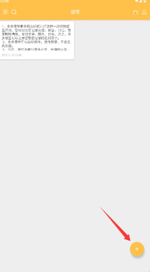 3、进入应用主界面后,找到并点击右下角的加号按钮进入便签内容编辑页面。