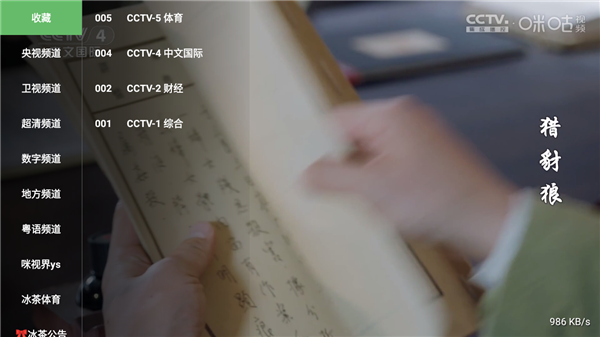 2、直接进入即可开始观看,若想切换频道,点击屏幕左侧,可以看到屏幕菜单栏。