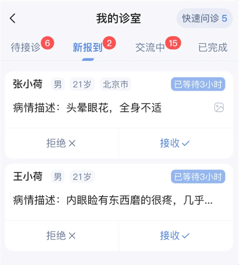 2、我的诊室全面升级:接收订单,回复患者更简单。