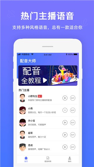 1、用户可以选择多种风格,比如男女声,年轻人,儒雅风等,从而使得配音效果更加真实、自然