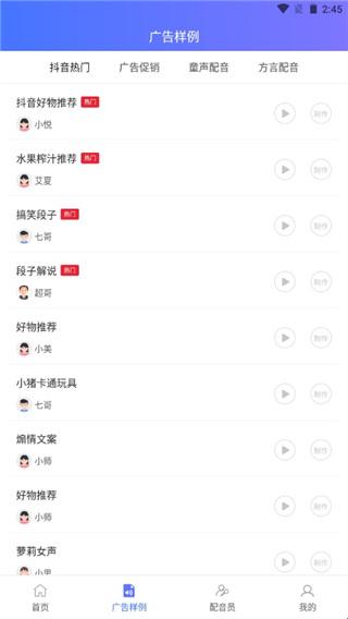 3、也可以在配音员内看配音员配的声音是否适合你的视频,让他们帮忙配。