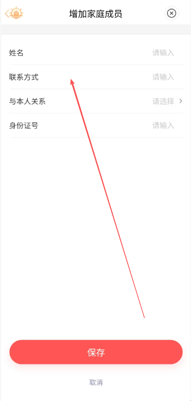 3、最后在增加家庭成员中输入姓名、联系方式、与本人关系和身份证号等内容之后点击保存即可。