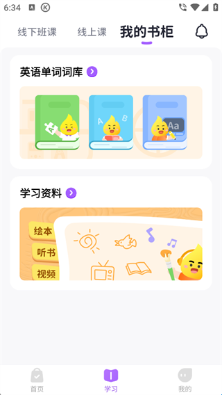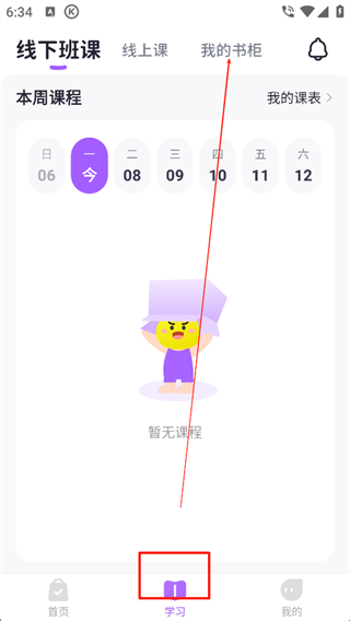 1、点击【学习】再点击【我的书柜】