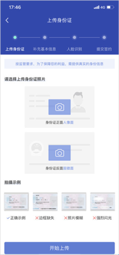 4、上传身份证、补充基本信息、进行人脸识别等操作。