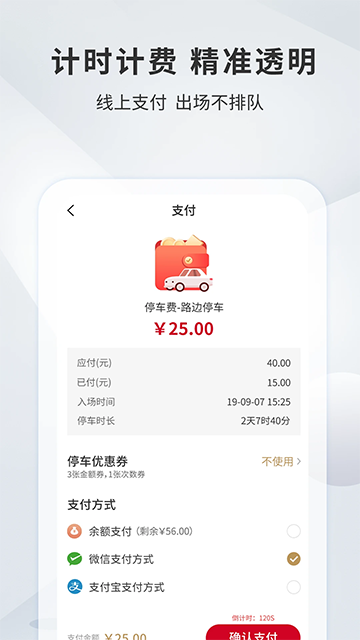 3、在线支付:支持在线支付停车费用,无需现金交易,方便快捷。