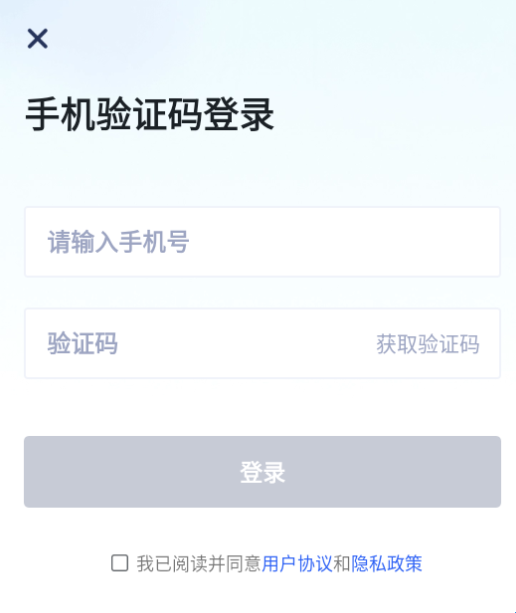 2、输入手机号和验证码进行登录。