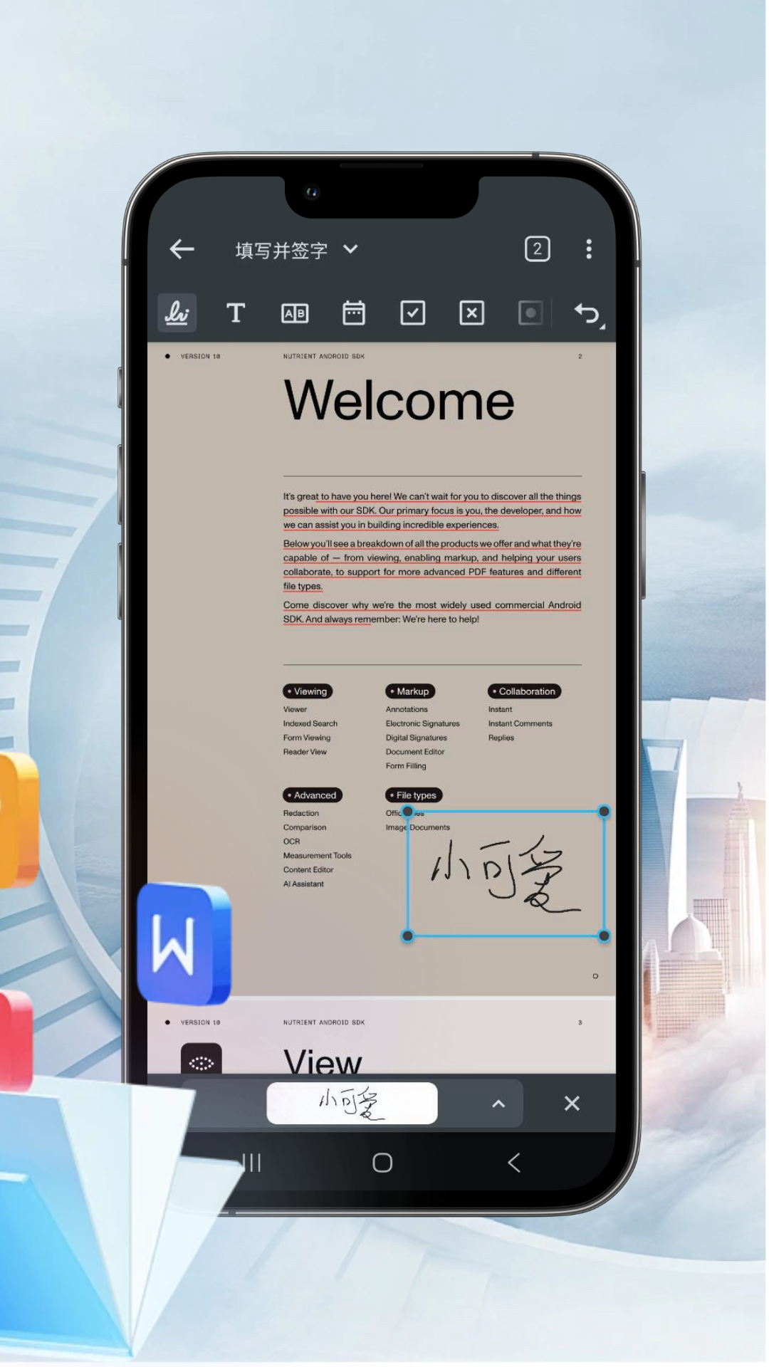 2、电子签名:支持创建和保存个人签名,轻松完成文档签名操作。