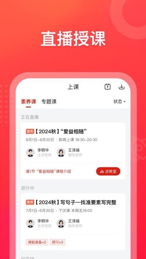 1、打开软件之后在首页中后我们可以看到系统班课,也可以去搜索老师和课程。