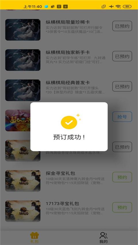 如果礼包暂时还没有开始发放,可以点击“预定”。在设置页面下的预约里可以查询已预约的礼包。