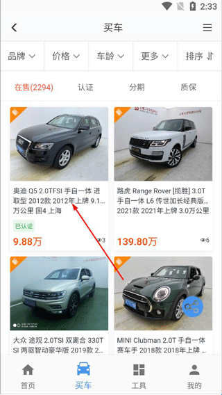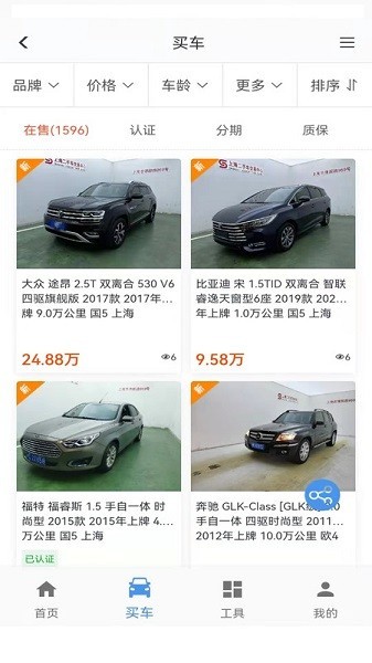 3、打开买车页面,可以查看在售车源信息;