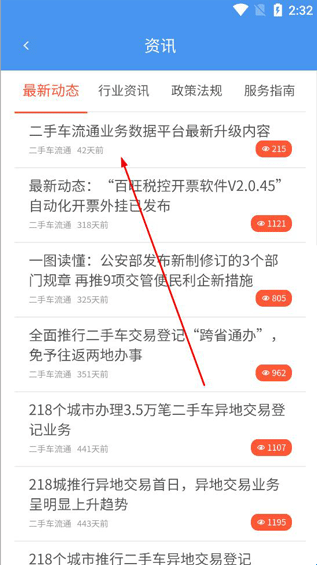2、点击首页右上角,可以查看二手车、汽车行业相关资讯;