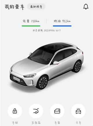 4、点击爱车,用户可以进行虚拟空车操作,查看车锁,后备箱等。