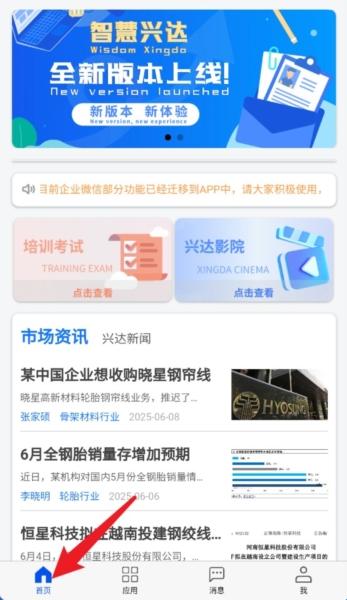1、进入“首页”可查看市场资讯、培训考试、企业新闻及新版功能公告等内容。