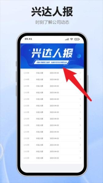 3、点击“兴达人报”可查看公司发布的内部动态与职工通讯,实时了解最新资讯。