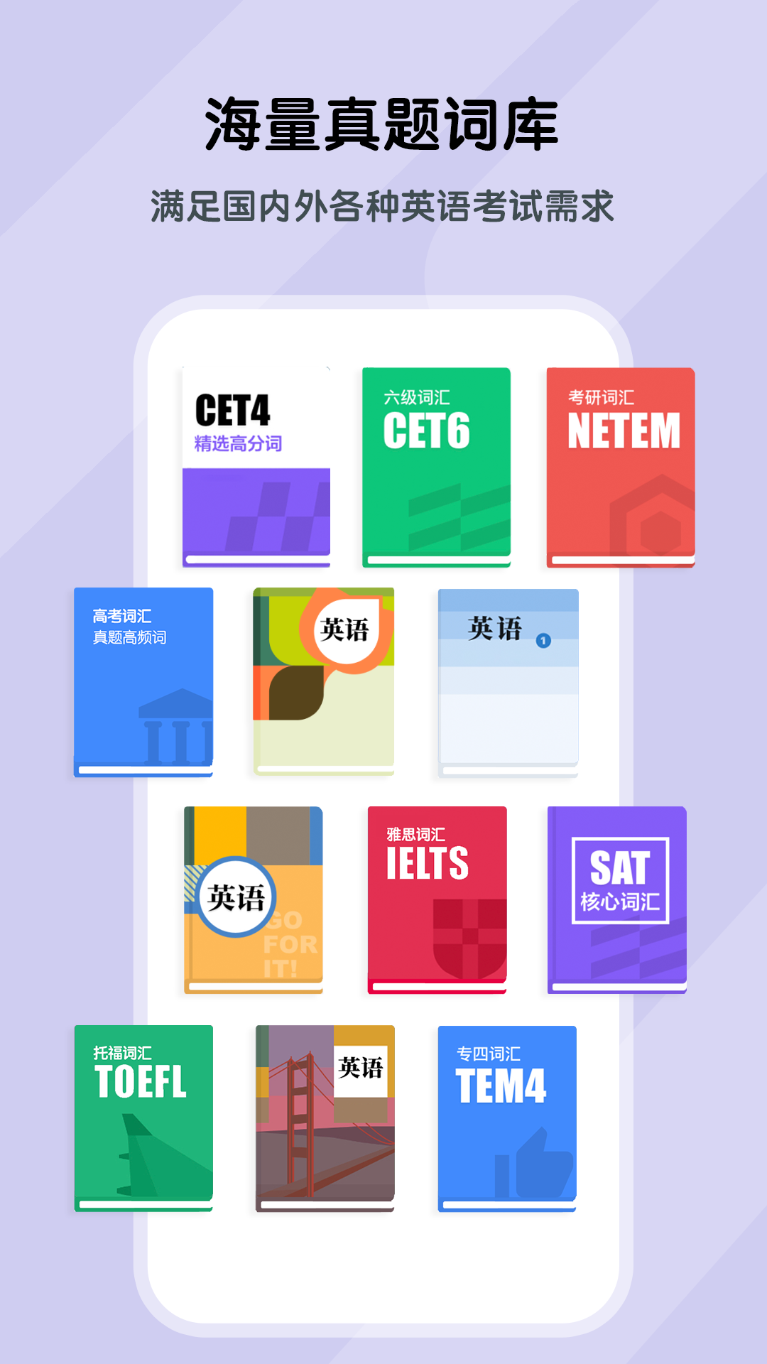 1、丰富的词库:提供包括四六级、考研、托福雅思等多种词库,用户可以根据自己的需求选择合适的词库。